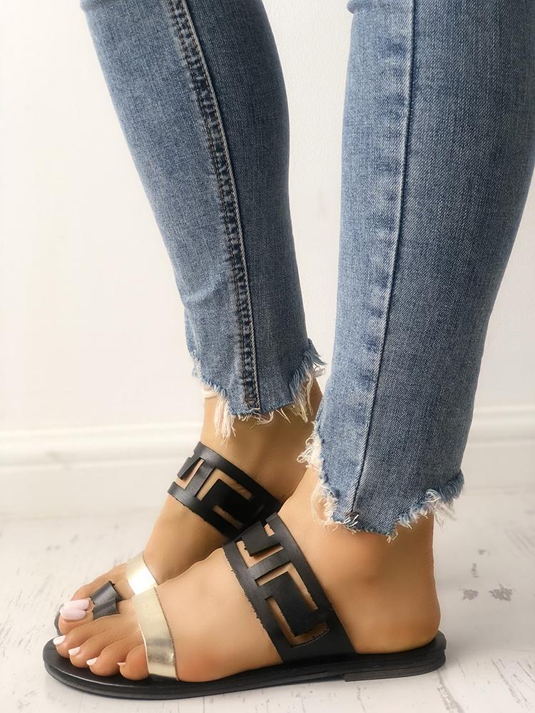 Two Tone Hollow Out Toe Ring Flat Sandals