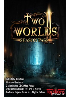 Includes the RPG saga Two Worlds II all previous and upcoming expansions: Experience an epic story as you navigate shaky alliances, fight fearsome enemies and work to uncover the mystery of the shadowy Dragon Queen in Two Worlds II. Then, take to the skies in the soaring DLC, Pirates of the Flying Fortress! Sail through the skies on your way to beautiful new environments and ferocious enemies as your adventure takes you far away from the mainland.Expand your adventure and continue your quest with the Call of the Tenebrae, the first single-player DLC included in the Two Worlds II Season Pass! Loaded with extras, season pass holders will automatically receive - at release Shattered Embrace, the second single-player DLC, in addition to both multiplayer map packs - Echoes of the Dark Past I & II, exclusive In-Game Itemss and weapons, the Two Worlds II Artbook and Compendium all in-game Soundtracks and more!The season pass allows you to explore the lands and lore of Two Worlds II like never before with a Major HD Engine Update! See below for a complete list of extras.