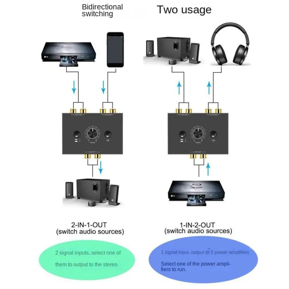 Two-way Stereo Audio Switcher 3.5mm Jack Digital Audio Splitter Analog Splitter Audio Decoder Amplifier Home