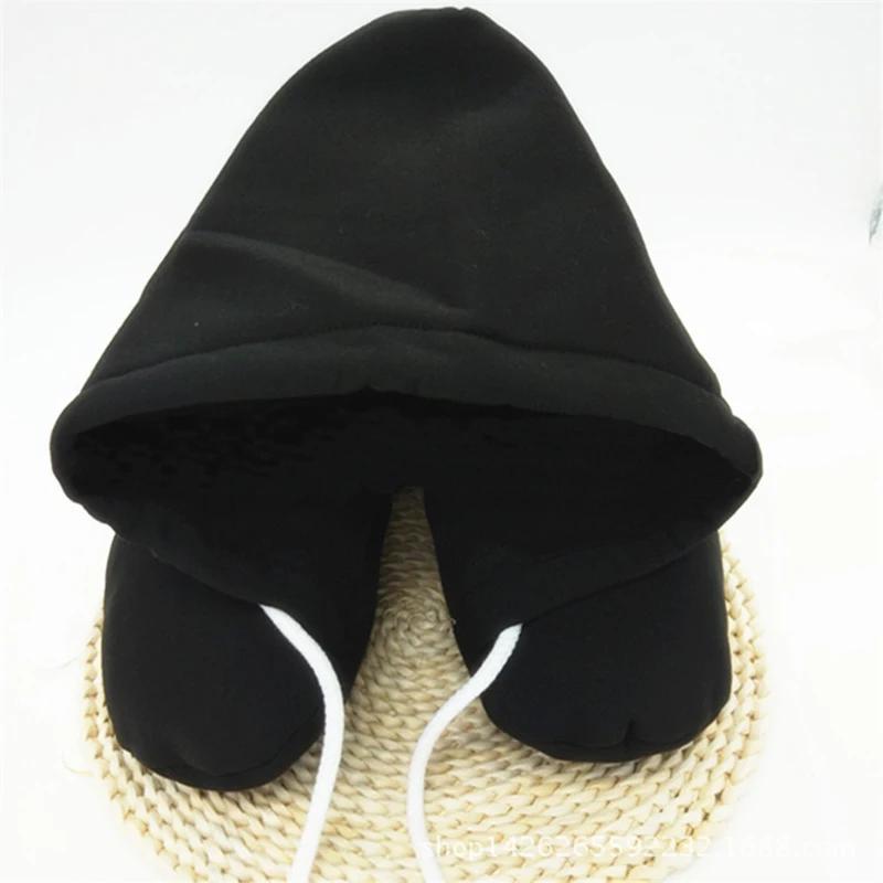 U-образные подушки с капюшоном для путешествий, дома, автокресла, подушки для офиса, самолета, подушки для шеи, легкие спальные коврики, популярные новые модели 30cmx29cmx9cm чёрный