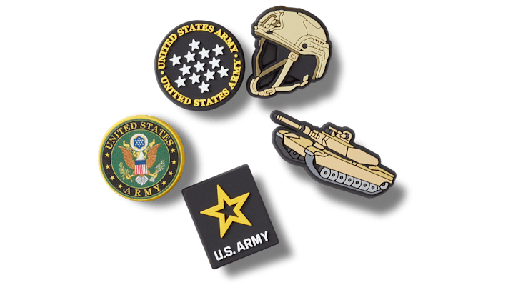 Pop some personality into your shoes with these US Army 5 Pack 2 Jibbitz™ charms. They’re the perfect addition to your favorite pairs of clogs, slides, and more.Not a toy. Not intended for children under 3 years of age.