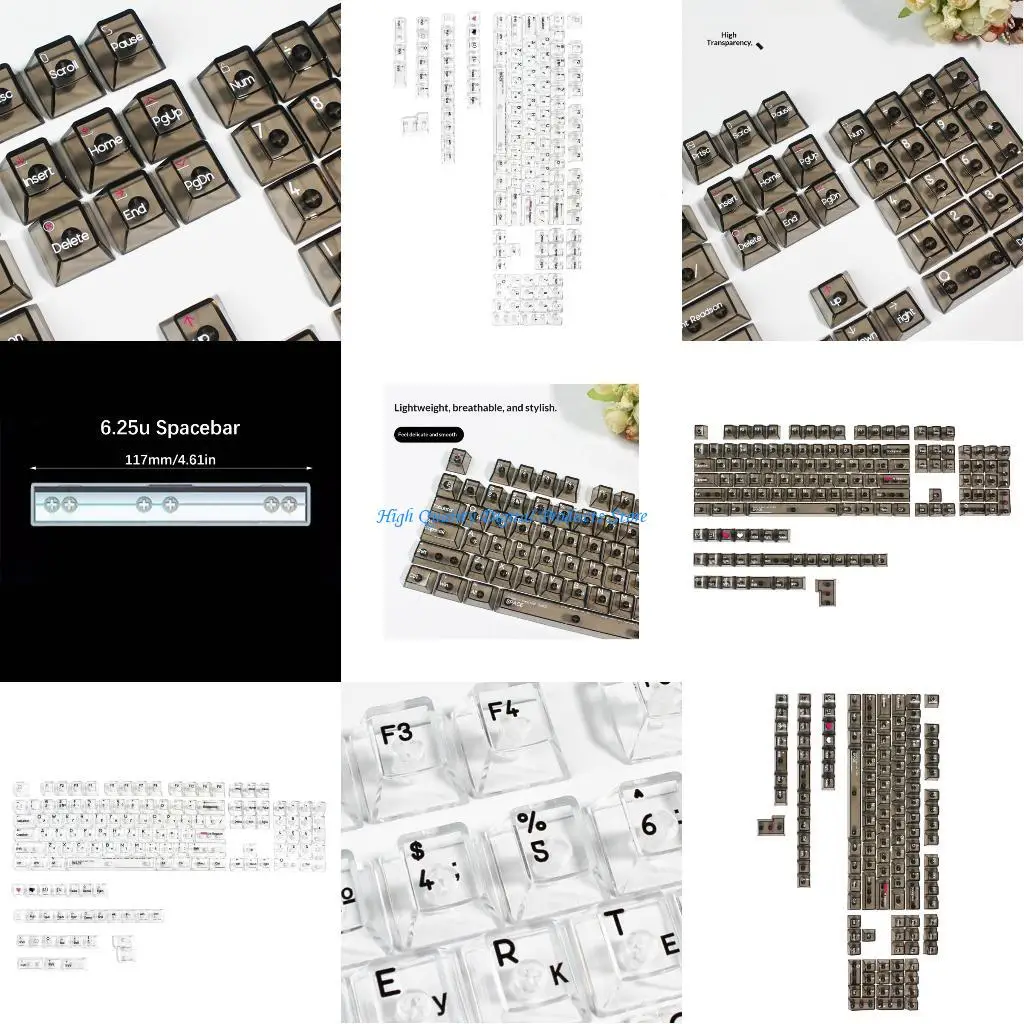 U2JE 132Keys PC Keycaps Russian Crystal Transparents Backlit for Mechanical Keyboards Original Profile