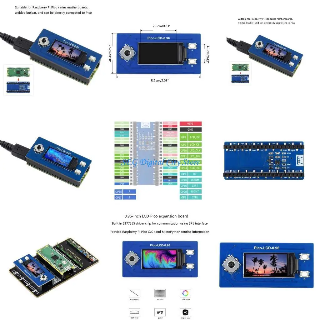 U75B 0.96Inch 160x80 RGB IPSLCD Display Module Screen ST7735S Driver Screen Board for RaspberryPico
