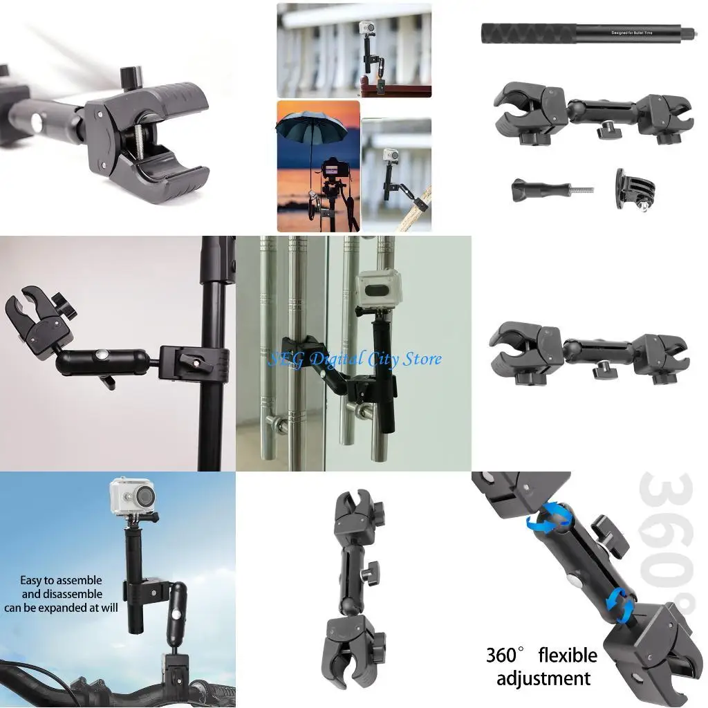 U75B Universal Action Camera Bike Mount Double Head Clamp Secure Grip Vibration Resistance 360 Rotation Design