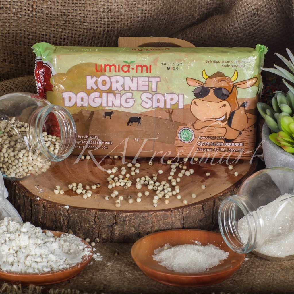 UMIAMI KORNET DAGING SAPI 450 GRAM, merupakan makanan instan yang terbuat dari olahan pilihan dan diproses secara higienis bersertifikasi HALAL dari MUI dan diproduksi berdasarkan standar BPOM RI, Terbuat dari Olahan Berkualitas ini dapat disajikan dengan berbagai menu makanan lainnya.
