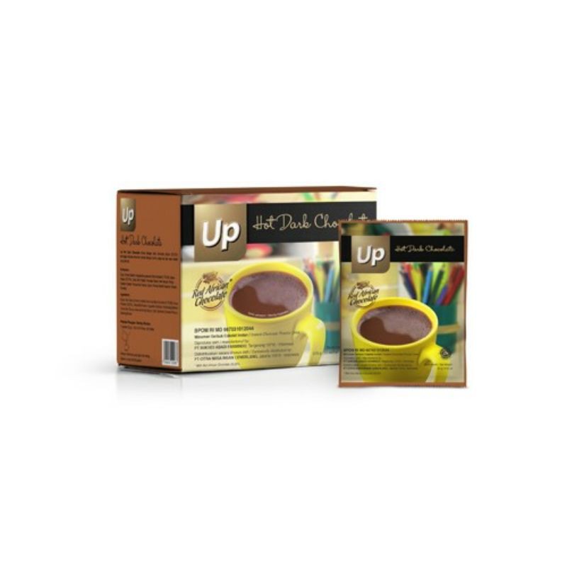 Up Hot Dark Chocolate adalah minuman serbuk cokelat instan yang dibuat dari perpaduan coklat bubuk dark chocolate (jenis Red African Cocoa powder), gula, krimer nabati, susu skim dan ekstrak Ginseng.
