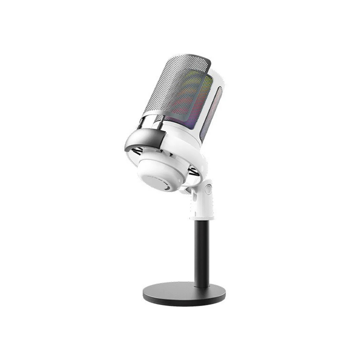 USB игровой конденсаторный микрофон, микрофон для компьютерной записи, конденсаторный микрофон с RGB подсветкой, белый