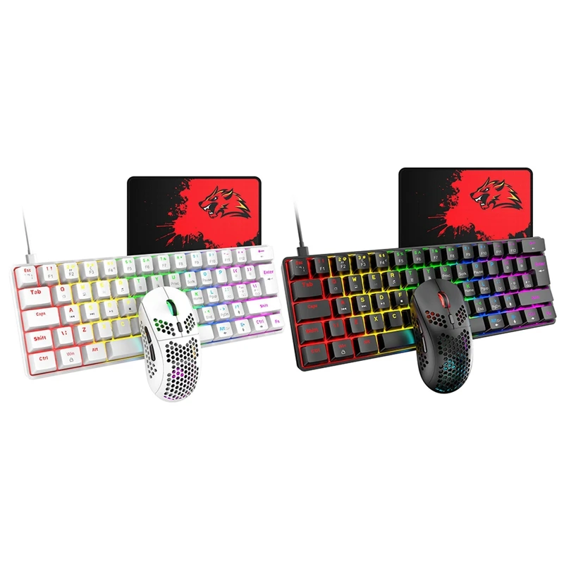 USB-клавиатура и мышь ZIYOU LANG, набор 62 клавиши, настоящая механическая клавиатура + мышь 6400DPI, RGB игровая клавиатура и мышь