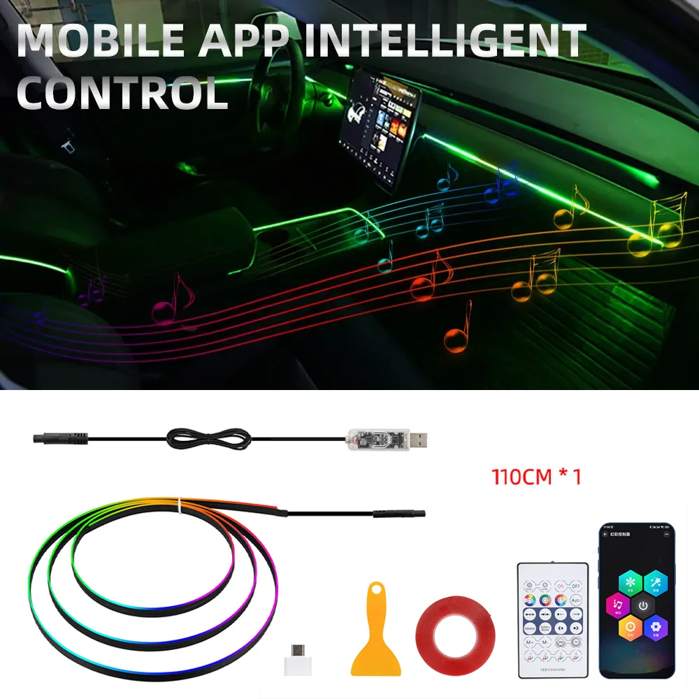 USB 5V WS2812 Car Interior RGB Ambient Light Set 110 140cm Acrylic LED Light Instrument Panel Dashboard Decorative Light for Car