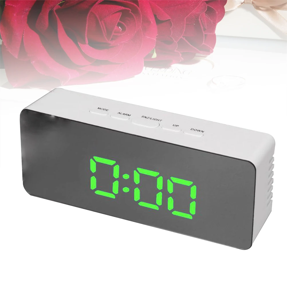 USB Alarm Clock Mirror Multi-Function LED Display with Radio Frequency Time Temperature Bright Screen Snooze Sleep Mode Clock
