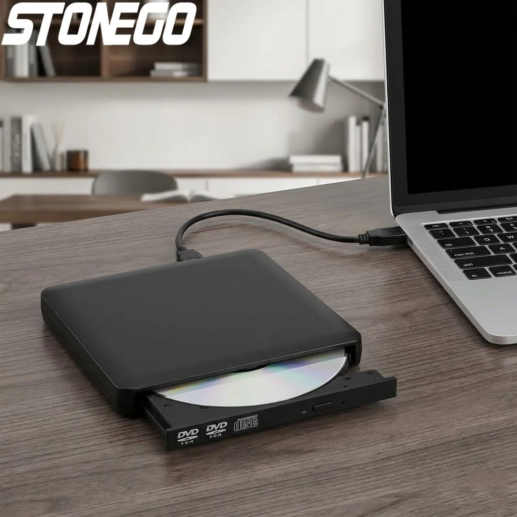 USB External CD-RW Burner DVDCD Reader Player Dual USB Cables Compatible Windows Mac Laptop Computer