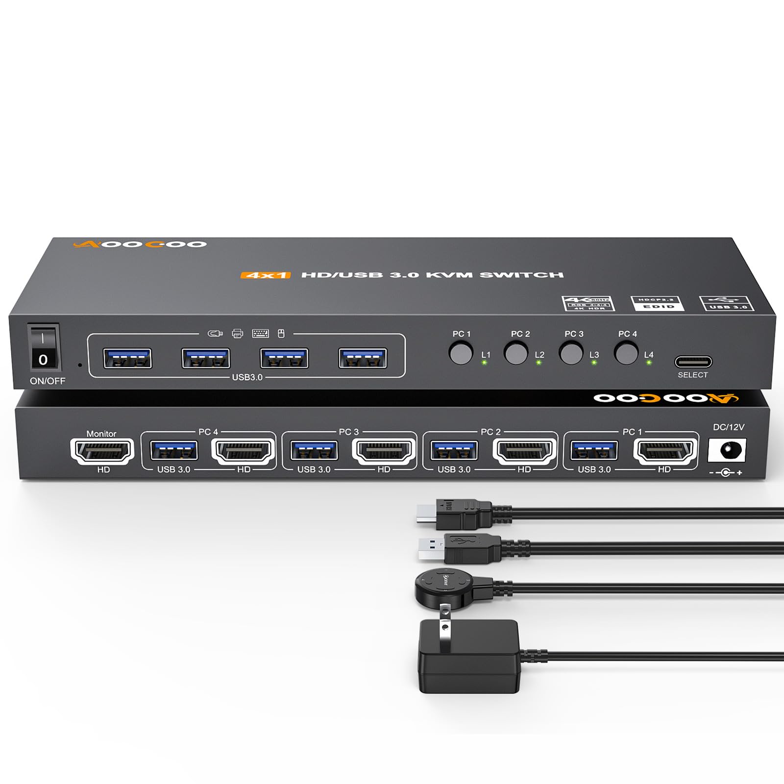 USB KVM Переключатель HDMI 4 ПК с EDID 4 Входа 1 4 USB Порта для HDMI Кабель в Комплекте 3.0 4K@60Гц Выход, 3.0 Клавиатура, Мышь, Принтер, Контроллер, USB3.0