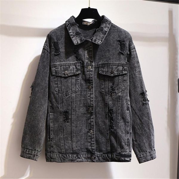 women's jackets 2021 autumn jean jacket for women loose casual denim vintage coats female outwear feminine large size 5xl 6xl m320, Black;brown