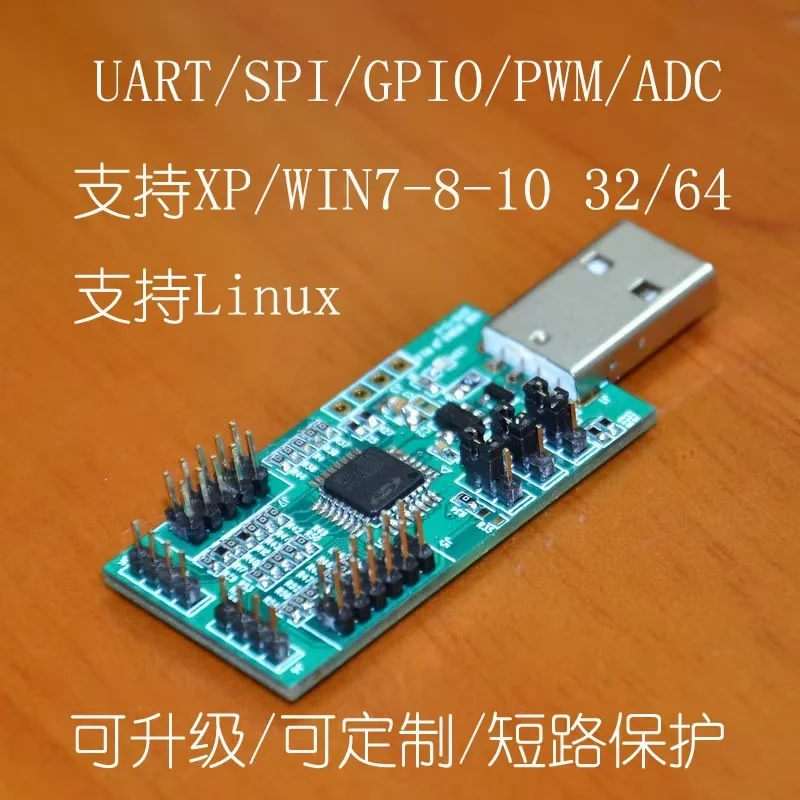 USB to UART, I2C, SPI (with 4 ADC, 4 PWM, 8 digital IO and nRF2401 test software)