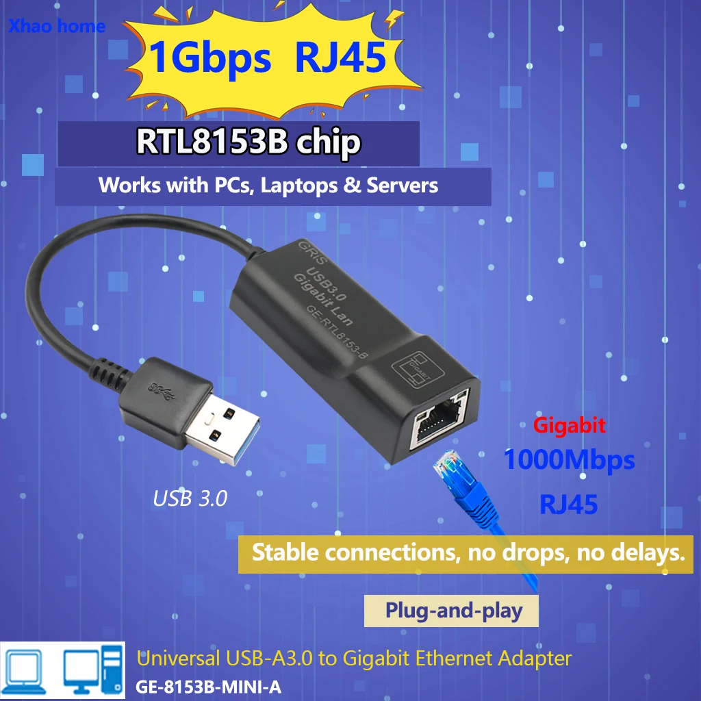 USB3.0 To RJ45 Network Cable Adapter 1000Mbps Wired Network Card External Drive Free Network Card ForComputer Notebooks RTL8153B