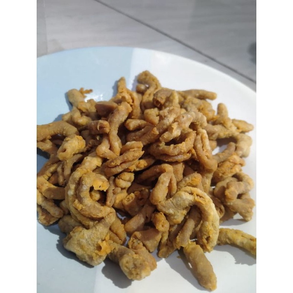 Keripik usus yang renyah dibalut tepung tipis. (harga belum termasuk plastik bubble)