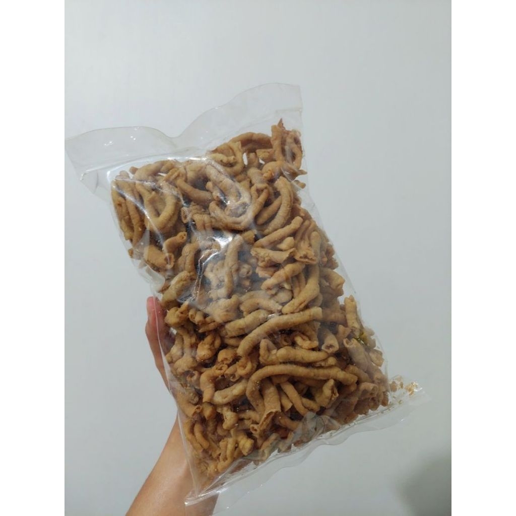 Makanan kripik usus ayam crispy dengan rasa gurih yang menggoda. Setiap gigitan memberikan tekstur renyah yang memanjakan lidah. Aroma daun jeruk yang khas menambah kenikmatan setiap momen. Cocok untuk camilan atau makanan ringan.