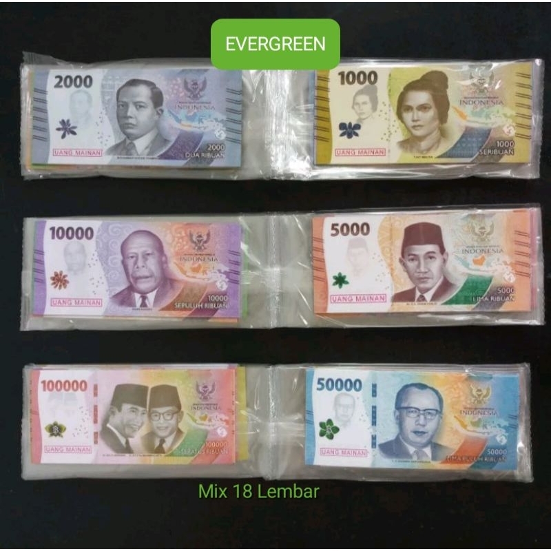 Harga 1 bgks isi 18 lembar uang mainan pecahan lengkap (tidak bisa pilih)