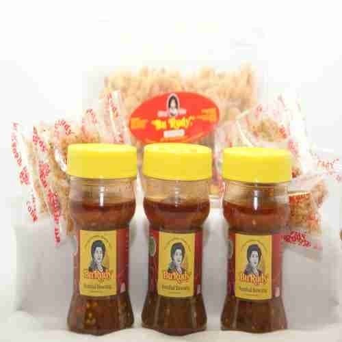 Udang digoreng crispy khas Bu Rudy dengan kemasan kotak dengan sambel bawang 3 pcs
