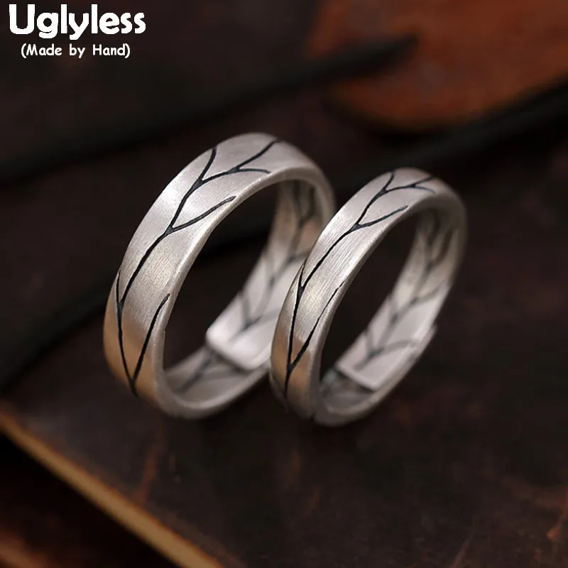 Uglyless 1 пара влюбленных кольца персонализированные трещины шаблон пары открытый кольцо Твердые 925 серебро ювелирные изделия мужчины женщины аккуратные модные ювелирные изделия