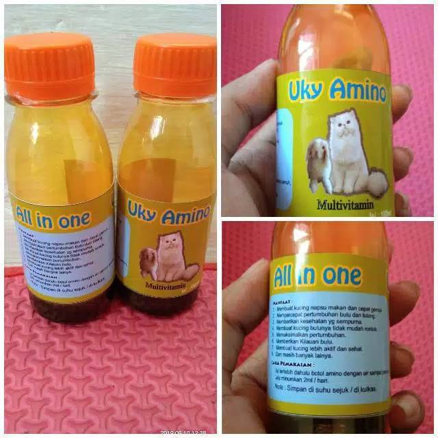 MANFAAT VITAMIN UKY AMINO : ( Napsu makan, Gemukin, Memperpanjang bulu, Mengurangi bulu rontok, Memperhalus bulu, Mengobatin Sakit Mata, Fluu, Mencret, Mengurangi kelenjar minyak di kulit, Memperkuat Antibody, Pertumbuhan badan yang Optimal. Memperbanyak air susu ketika menyusui, Sangat dibutuhan utk kucing pada saat hamil dan paska kelahiran. dll