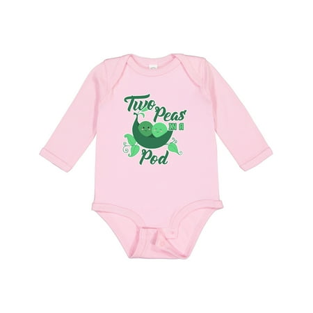 Inktastic Two Peas in a Pod with Faces Gift Baby Boy or Baby Girl Long Sleeve Bodysuit