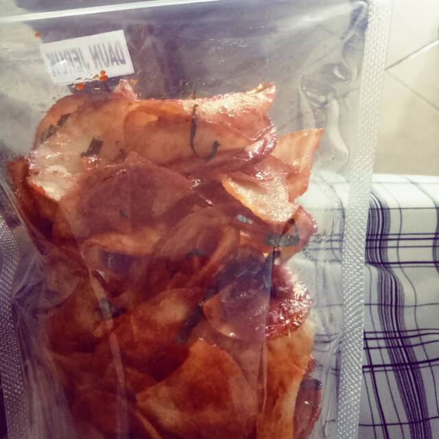Makanan ringan dari singkong dan makaroni dengan bumbu balado serta daun jeruk #keripiksingkong #kripikbalado #makaronibalado