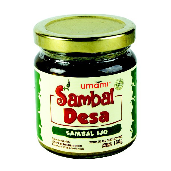 Umami Sambal Desa Sambal Serbaguna hadir untuk menambah cita rasa masakan/ makanan anda. Dibuat dari campuran cabe hijau, air dan bumbu berkualitas yang dikemas dalam botol praktis tuang dan sajikan.