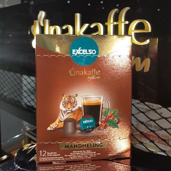 Kopi Mandheling dari Excelso Unakaffe dalam bentuk kopi kapsul. Satu folding box berisi 12 kopi kapsul. Kopi kapsul ini hanya bisa digunakan pada sistem Unakaffe dan tidak bisa digunakan pada mesin lain.
