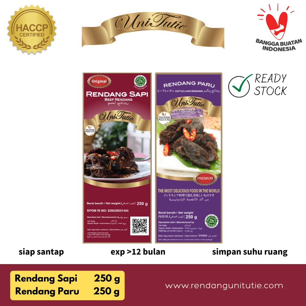 Uni Tutie Paket Duo Rendang Sapi 250gram & Paru 250gram