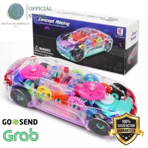 Mobil mobilan transparan yang berisi gear. Gear dapat berjalan ketika mobil berjalan. Mobil di lengkapi lampu dan musik, menambah seru ketika bermain.