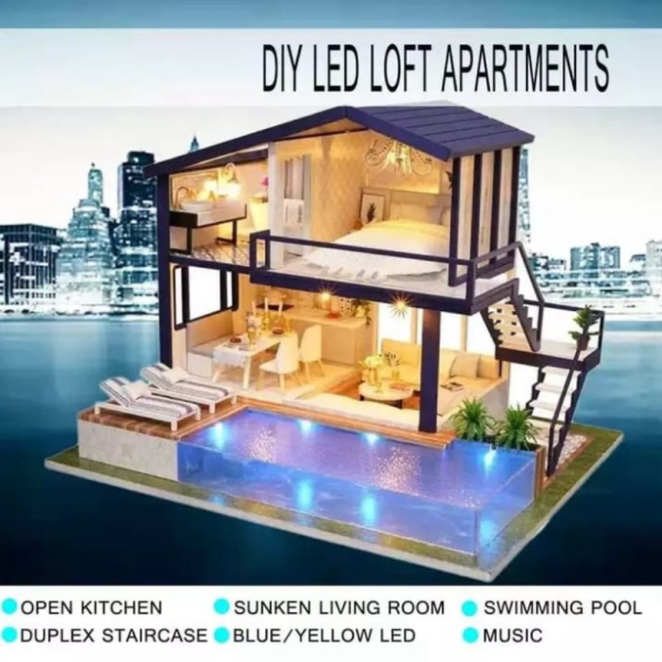 Unik Miniatur Rumah Boneka DIY dengan APARTEMENTDIY LED OF LOFT APARTMENT Diskon