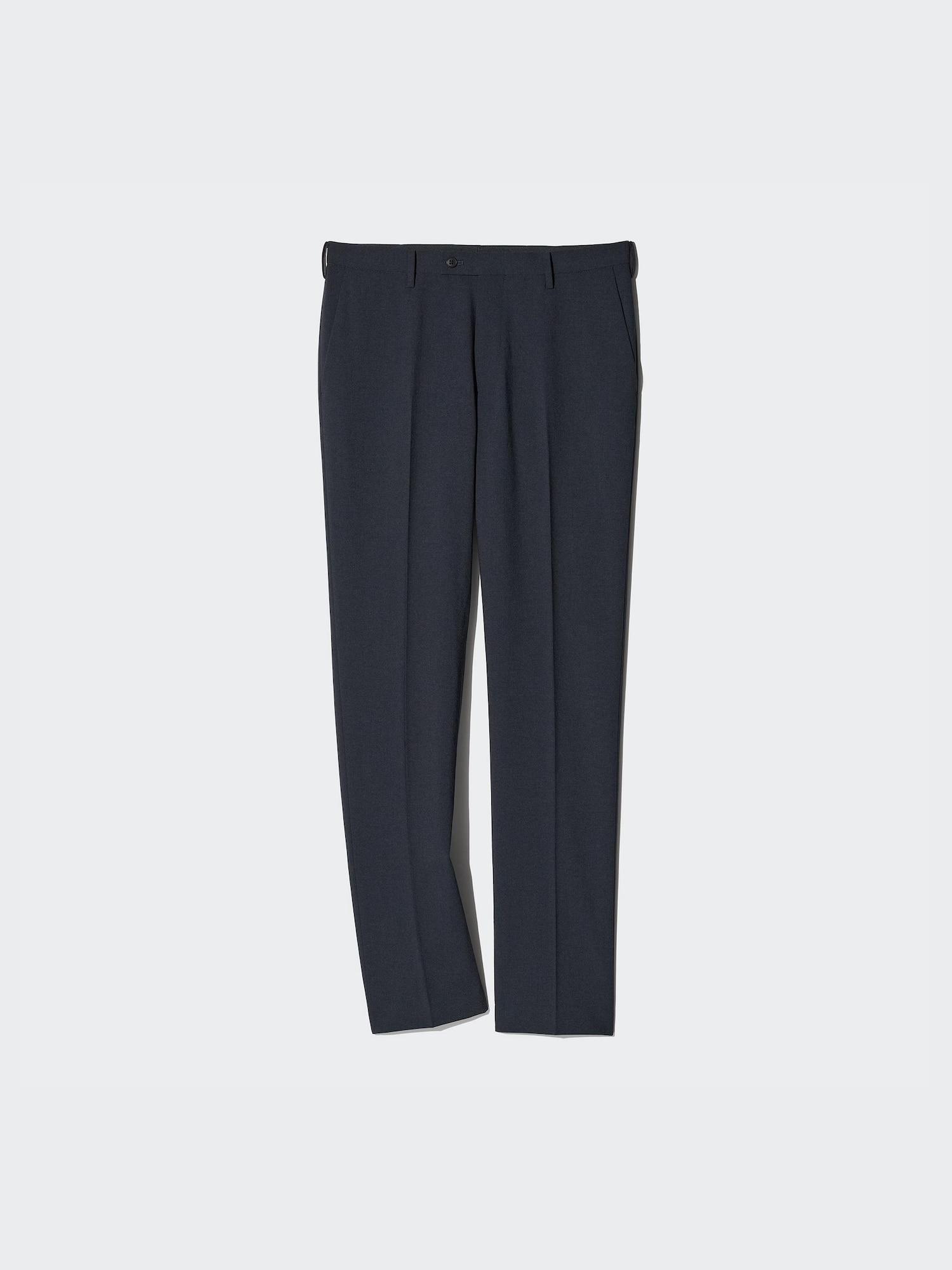 Uniqlo Япония впечатляющие брюки 2-сторонняя растяжка шерсть как длина 70 73 76 85 см можно настроить 69 NAVY/85