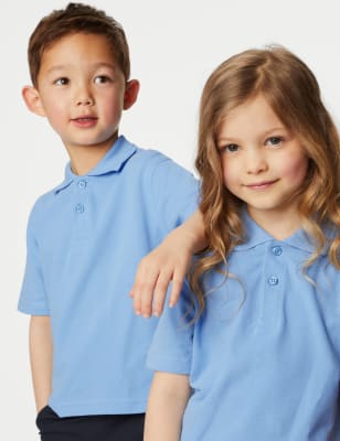 Unisex,Boys,Girls M&S Collection 3pk Unisex Pure Cotton School Polo Shirts (2-16 Yrs) - Blue, Blue
