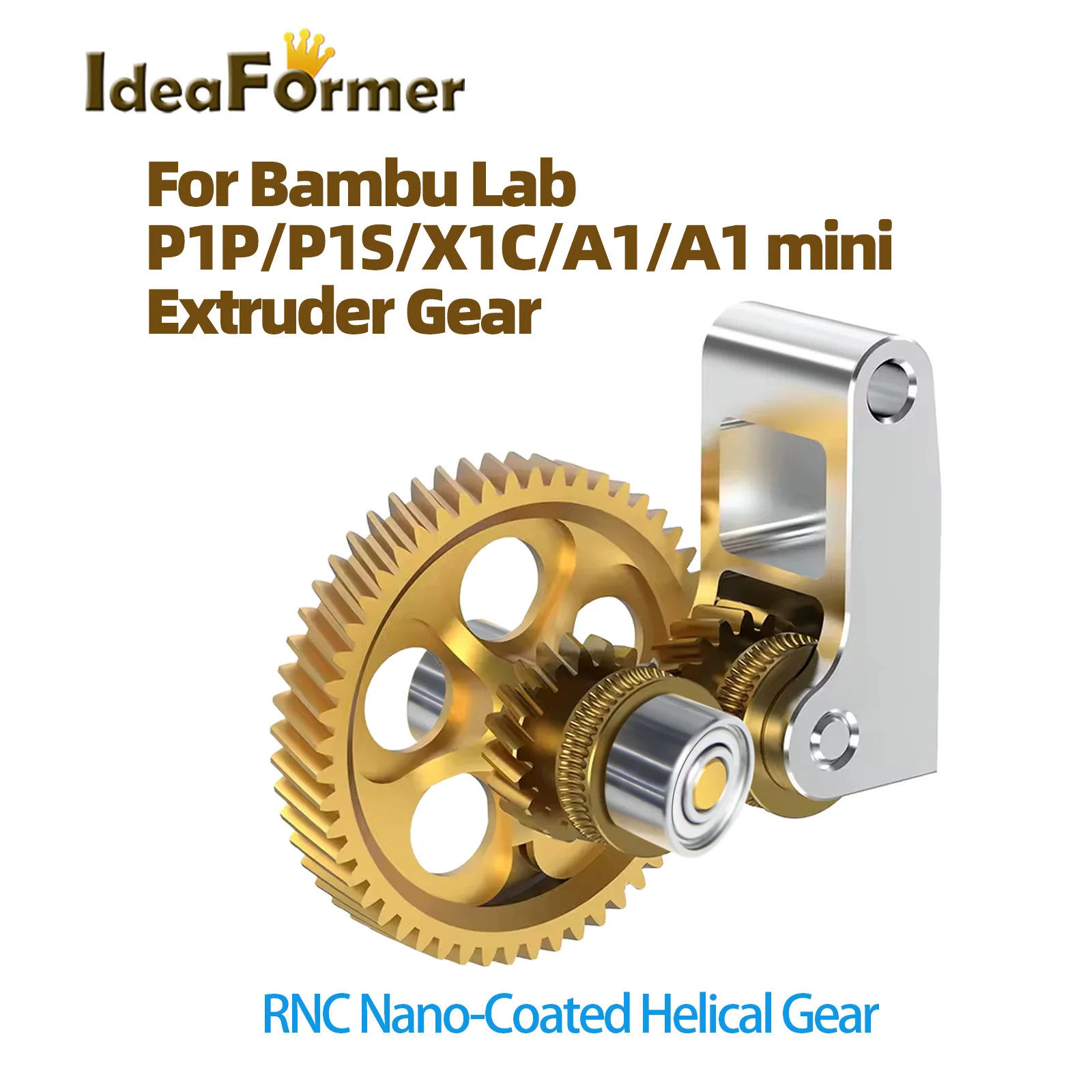 Upgrade Hardened Steel Extruder Gear Assembly Wear-resisting Gold RNC Nano-Coated For Bambu Lab P1S P1P X1 Carbon X1C 3D Printer
