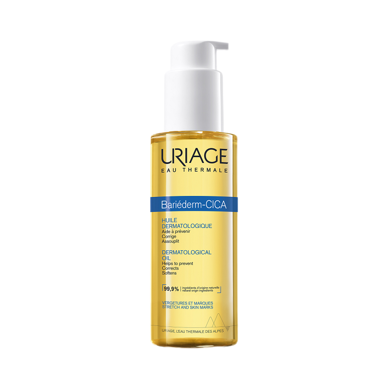 Растяжки на коже могут возникнуть по разным причинам: беременность, резкое увеличение или снижение массы тела, гормональные изменения. Для решения этой проблемы учеными лаборатории Урьяж было создано дерматологическое цика-масло Барьедерм. Формула средства на 99,9% состоит из компонентов натурального происхождения, действие которых направлено на повышение эластичности кожи, активизацию восстановительных и регенеративных процессов. Продукт интенсивно питает и увлажняет кожу, смягчает и разглаживает ее, повышает защитные свойства. Регулярное применение Uriage Bariéderm Cica-Huile dermatologique позволяет уменьшить выраженность существующих растяжек и предупредить появление новых. Средство также эффективно борется с рубцами и шрамами. Цика-масло имеет приятную текстуру, быстро впитывается, не оставляя следов на одежде. Обладает приятным натуральным ароматом. В ходе клинических исследований под дерматологическим контролем подтверждено уменьшение размера и цвета растяжек уже через 2 месяца применения. Средство подходит для использования в период беременности и лактации. Активные компоненты: комплекс GF-REPAIR повышает эластичность кожи; масло Таману восстанавливает структуру кожи, ускоряет заживление; масло жожоба питает эпидермис, повышает его защитные свойства; масло авокадо придает коже мягкость и шелковистость; масло подсолнечника насыщает клетки питательными веществами; бисаболол проявляет противовоспалительный и смягчающий эффект, выравнивает тон кожи; фитосквалан регенерирует гидролипидный барьер. без красителей без воды без консервантов без красителей