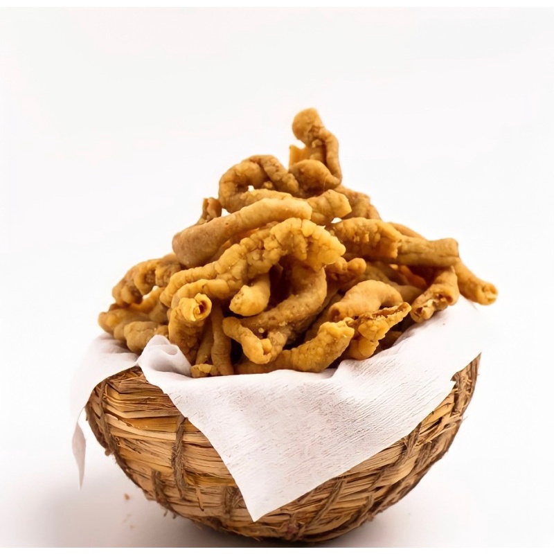Usus Ayam Crispy pilihan, diolah dengan bersih dan diberi bumbu pilihan berkualitas.