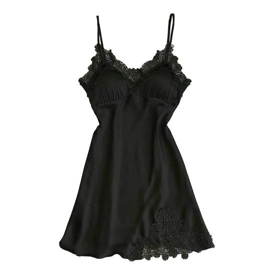 V-образный вырез, открытая спина, без рукавов, атласное кружево, пэчворк, съемные подушечки, мягкий однотонный, выше колена L чёрный