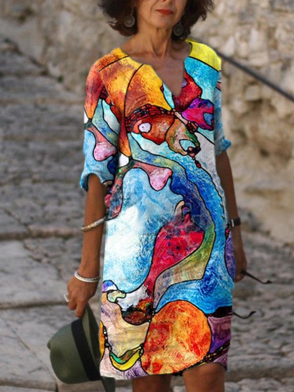 V Neck Casual Shift Dresses