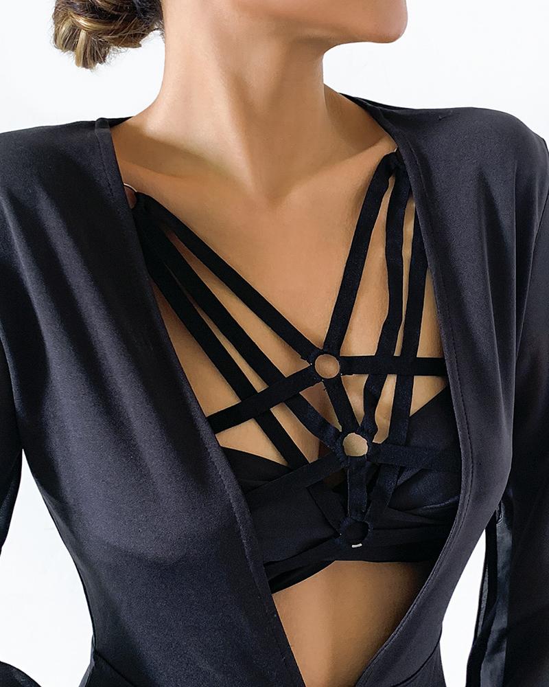 V-Neck O-Ring Strappy Body Harness, Black
