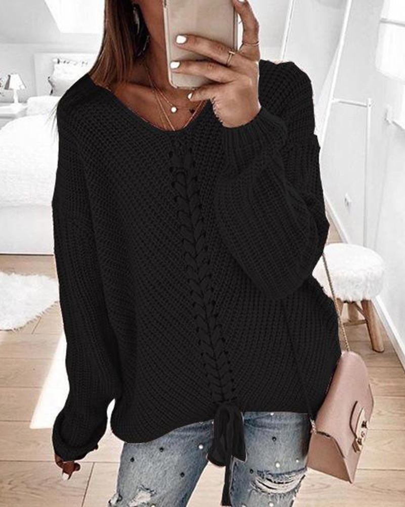V Neck Rib Knit Sweater