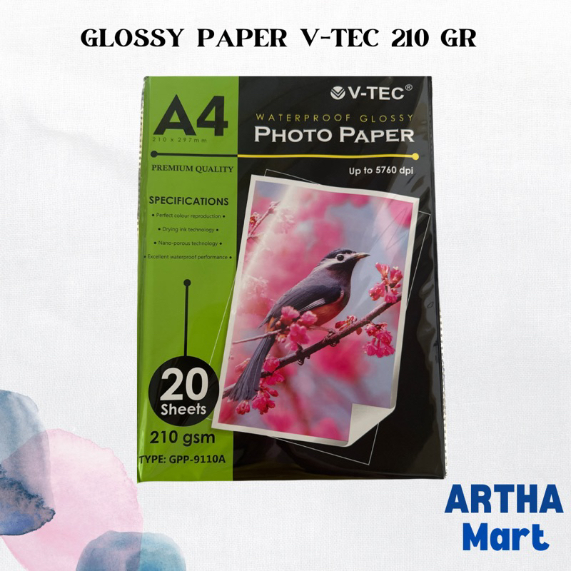 V-TEC - GLOSSY PAPER KERTAS FOTO 210 GR - PACK
