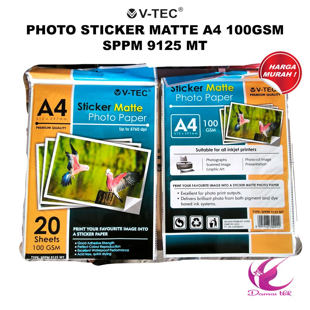 V-tec Kertas Photo Sticker Matte A4 100 Gsm SPPM 9125 MT