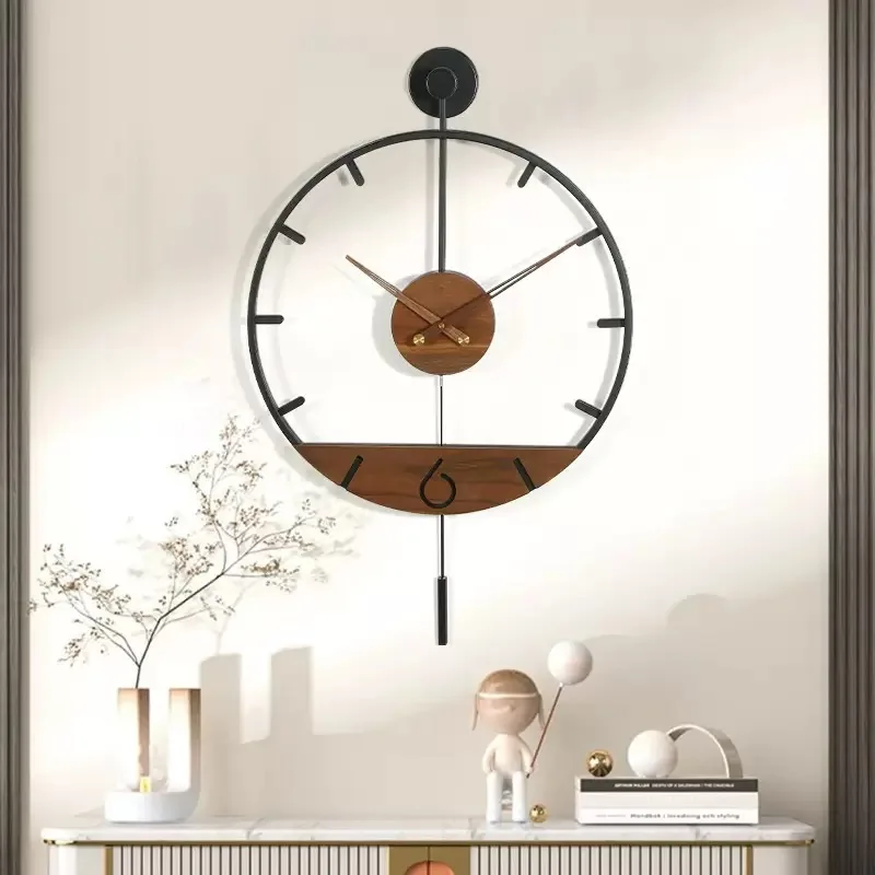 Nordic Minimalist Decorative Clock Living Room Modern Background Wall Hanging Clock Light Luxury Art Wood Clock