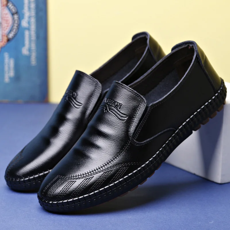 Spring Genuine Leather MEN'S SHOES Men Business Casual Shoes round Foot Covering MEN'S Shoes Wear-Resistant Breathable Driving L
