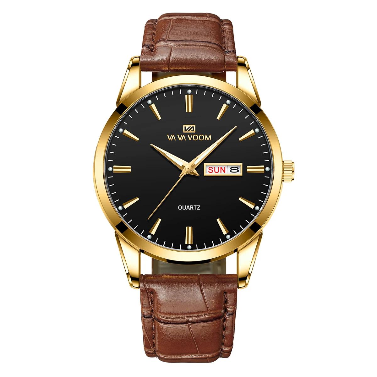 VA VA VOOM Унисекс Кварцевые Часы Лучшие Мужские Кварцевые Часы Бизнес Часы Кожаный Ремешок Модный Стиль Классические Двойной Календарь Женские Кварцевые Часы Men’s Quartz Watches коричневый