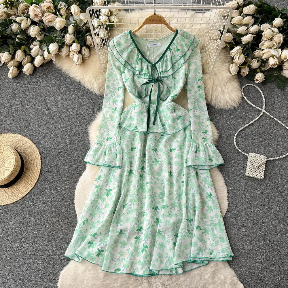VANOVICH 2023 весна-лето новая мода воротник Питер Пэн гофрированные расклешенные рукава Цветочный Тонкий талии тонкое ТРАПЕЦИЕВИДНОЕ длинное платье