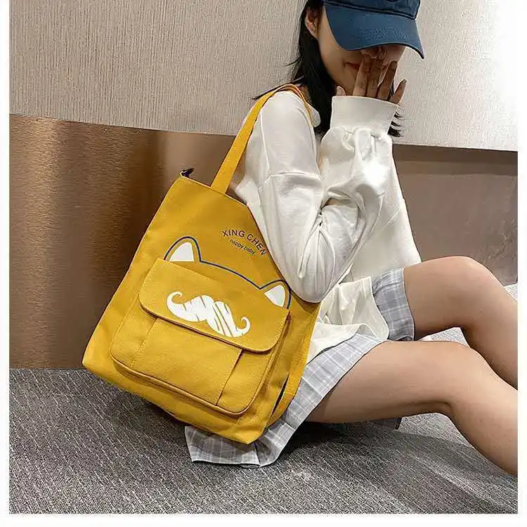 VASSARETTE модные вместительные сумки через плечо, Корейская сумка, многоразовые холщовые сумки с мультяшным принтом