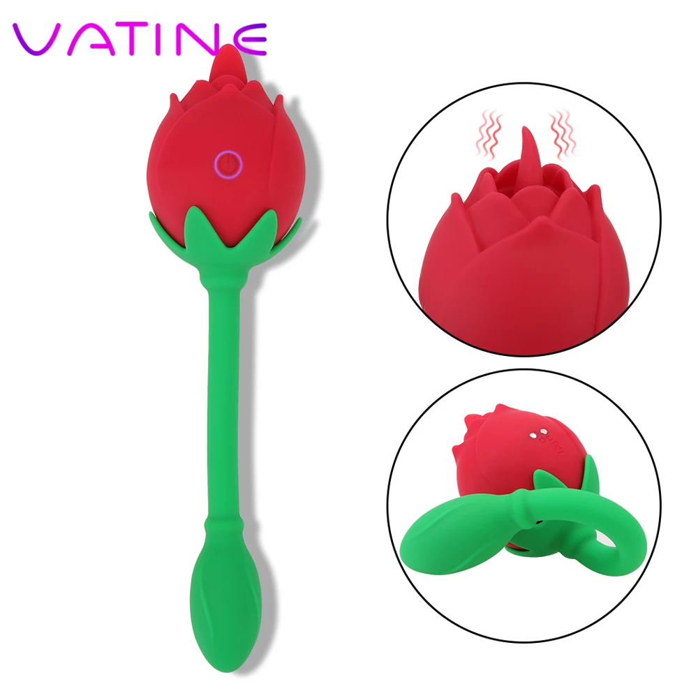 VATINE 2 в 1 Стимуляция клитора, язык, лижущий вибратор, массажер для сосков в форме розы, вибрирующие секс-игрушки