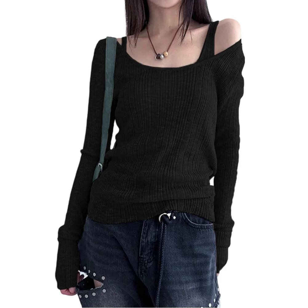 VAYLA Повседневный выход Комплект из двух частей Топ с длинным рукавом Повседневная мода Черный Новое состояние Вырез на одно плечо S чёрный